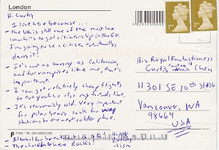 37postcards overshare Postcard #4 by Curtis Chen October 1, 2010 From our friend Lisa, currently living in London–and, apparently, having “[a]lcohol for breakfast.” Um, Lisa, is there anything we need to talk about? About Author Curtis Chen I am not an aardvark. See author's posts