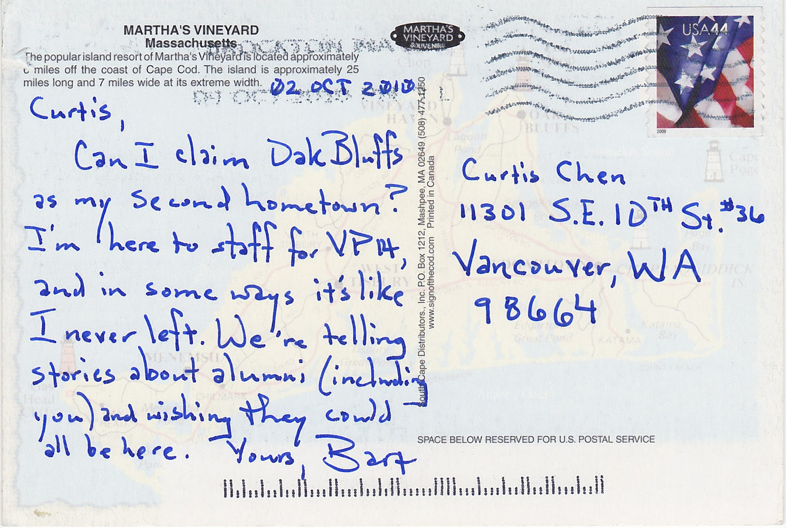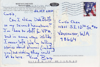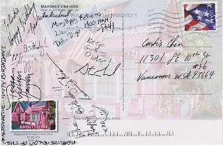 A pair of postcards from Martha’s Vineyard, where this year’s Viable Paradise writing workshop (of which I am an alumnus) is happening right now. Thanks to all the instructors and staff who sent their greetings! Wish I were there.