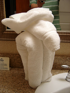 That’s what we found in the bathroom when we checked into our room at the Holiday Inn Express. Incidentally, HIE has become one of our favorite hotel chains; they always have good kitchenettes (mini-fridge, microwave oven, and counter space), hot breakfast in the morning and snacks at cocktail hour, and usually decent wi-fi. Road trippers take note.