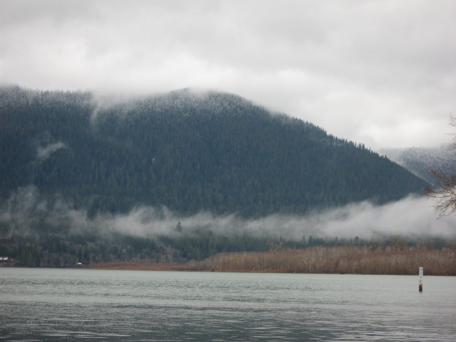 It snowed a little last night. We could still see some of it in the trees up on the mountain this afternoon: