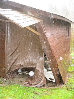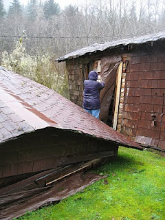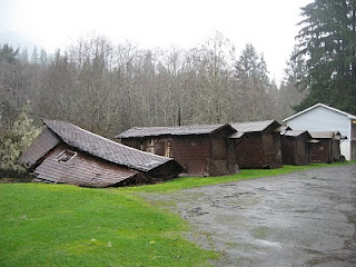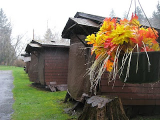 After visiting the spruce, we realized we were just at the other end of the road that led from the Rain Forest Resort Village cabins, so we walked back that way. It was less muddy than the trail we’d come in on, and we got to take a closer look at the ruins we’d driven past a few days ago.
