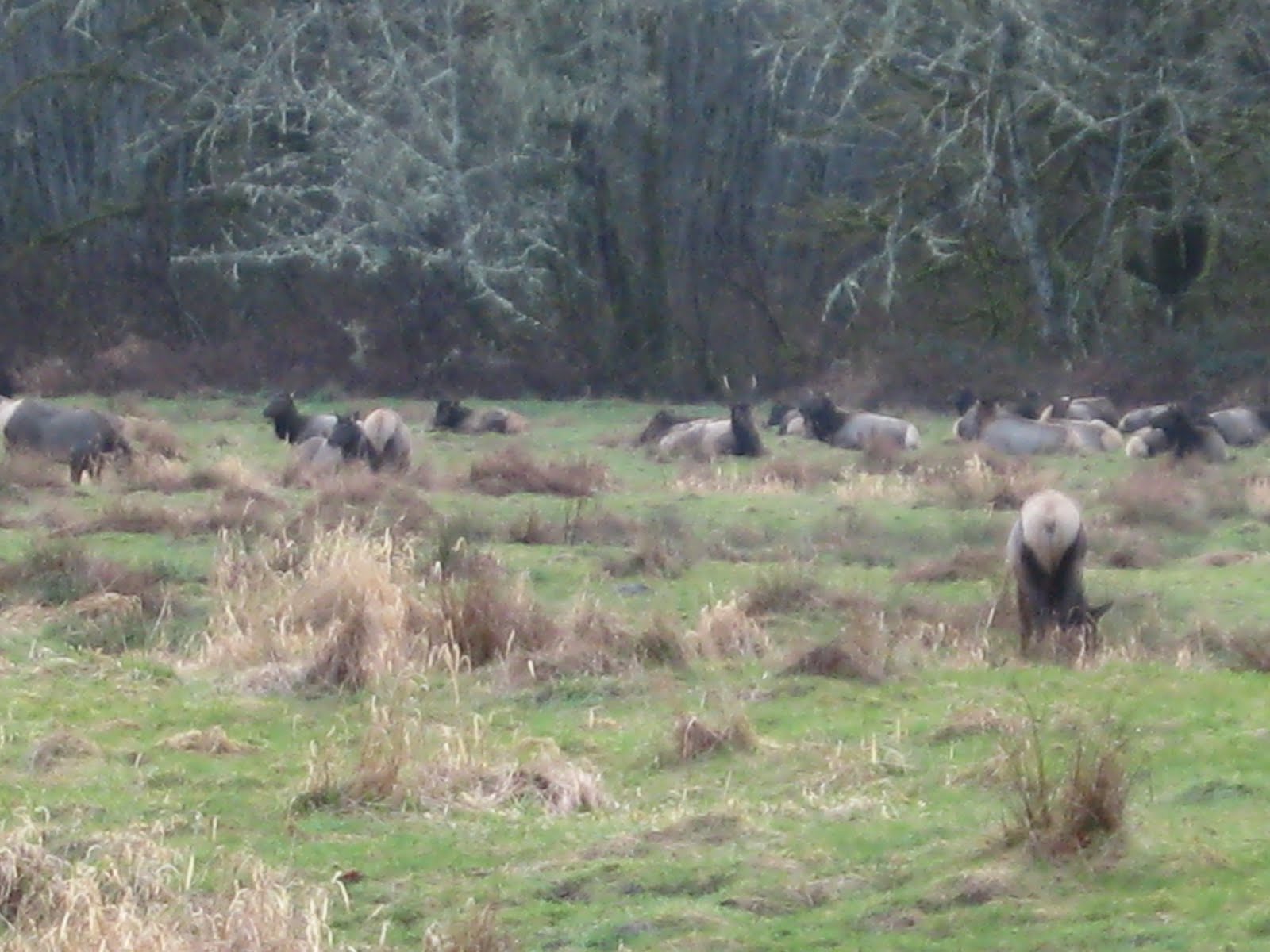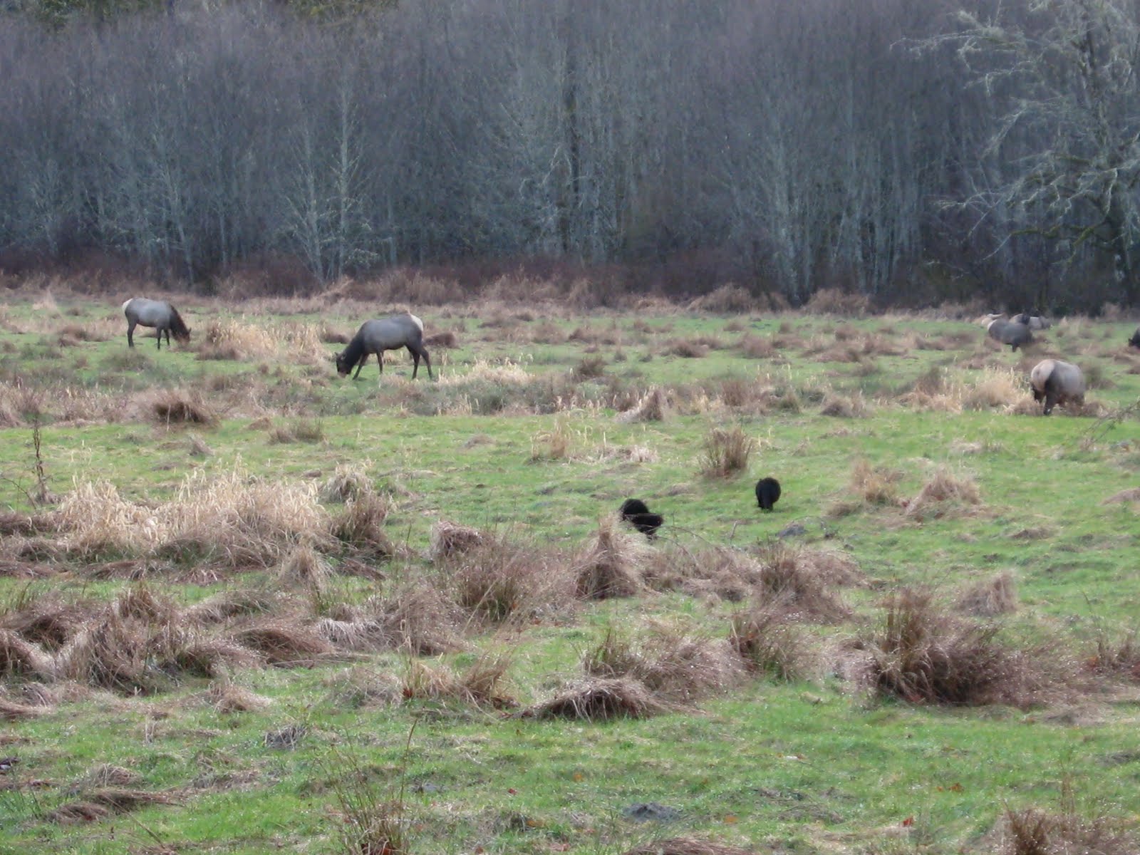 I know what you’re thinking. Cats and elk, living together? Madness! Relax. It was only a temporary cohabitation, as the cats ran off shortly after they realized they had been seen.