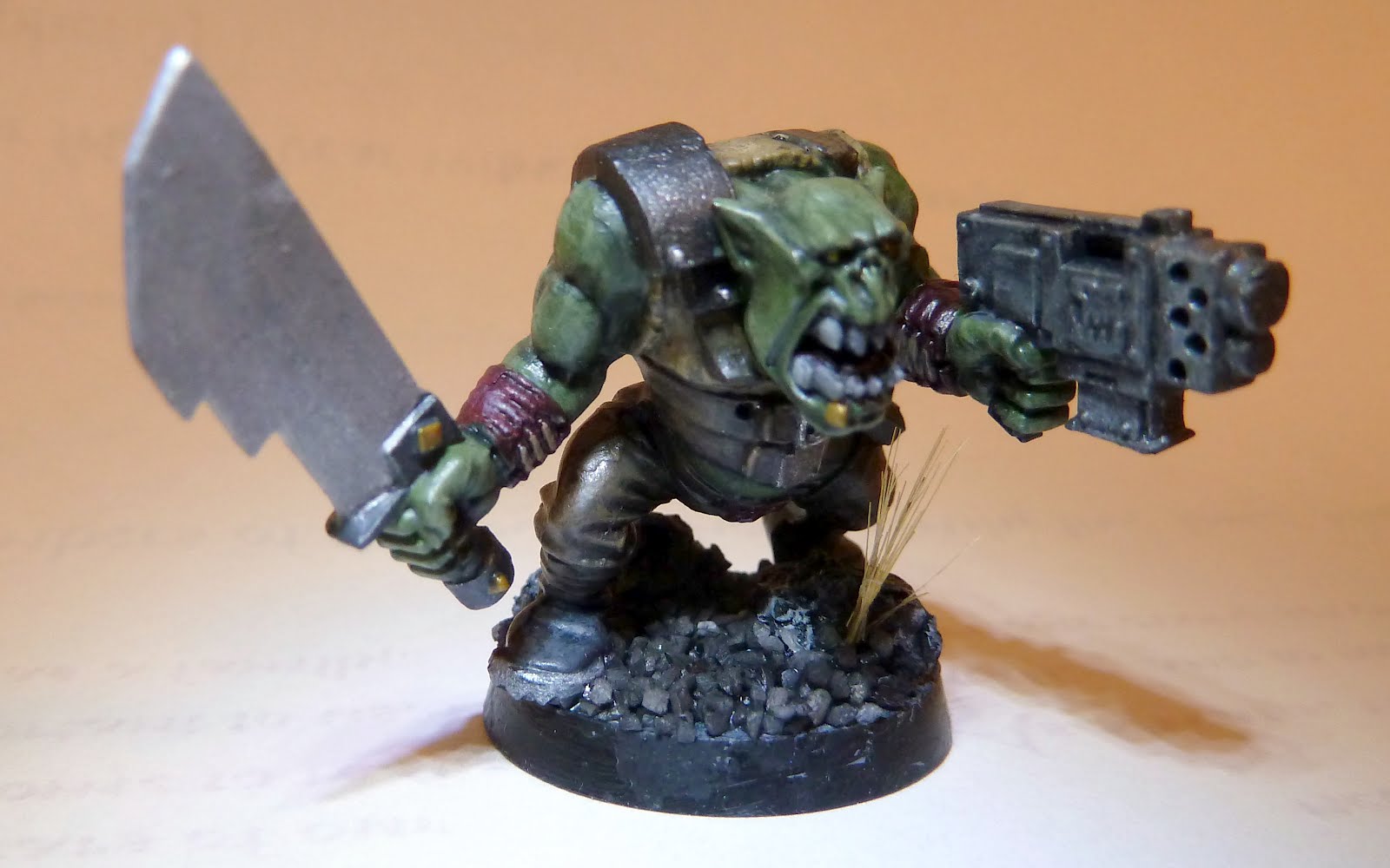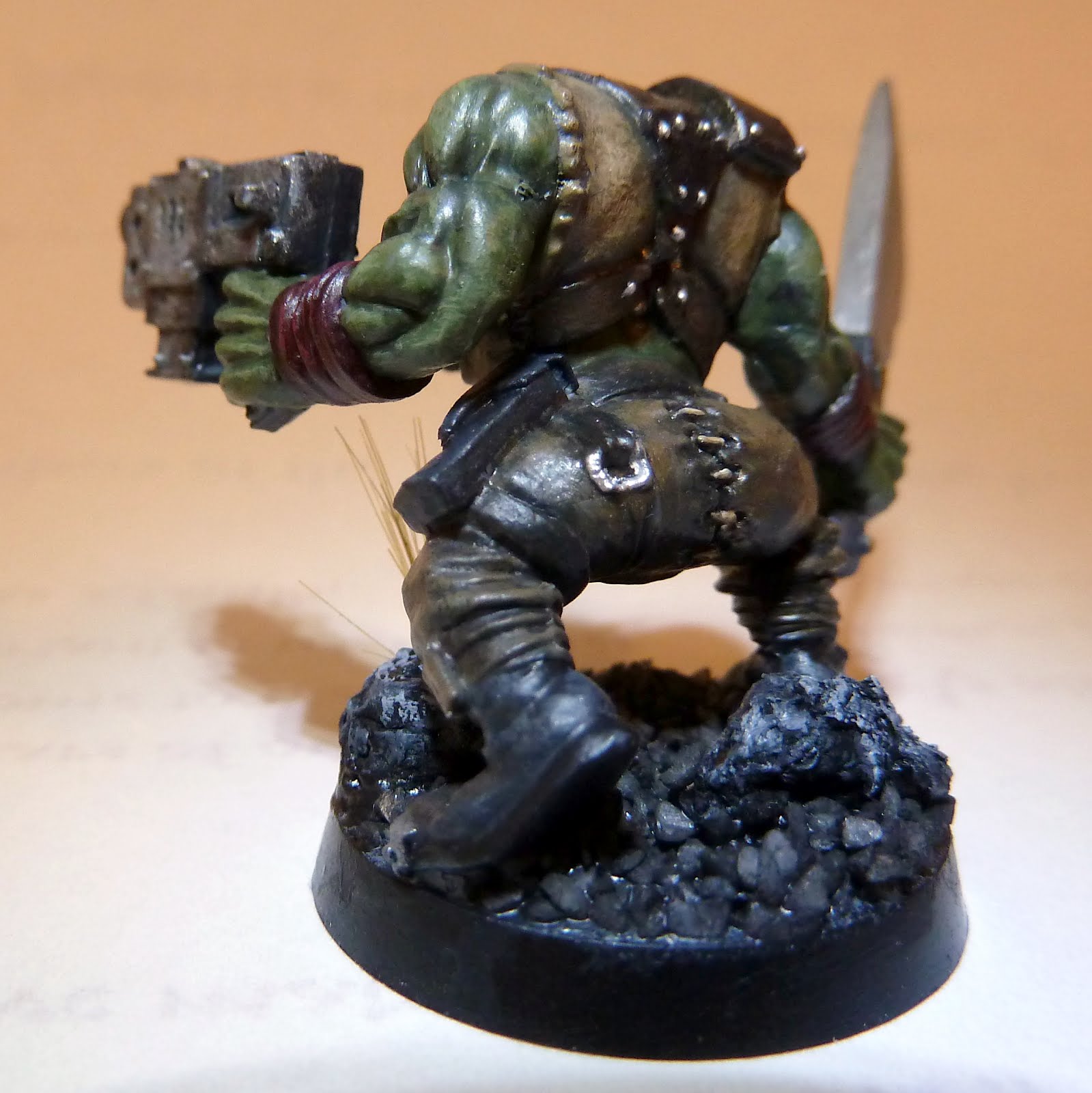 That’s not the actual mini (I didn’t take a photo, and I couldn’t find it online), but it’s similar in that the monochrome plastic obscures a lot of the detail that was sculpted into the figure. Also note, that circular base is just one inch across. It’s tiny. Painting one of these things is all about tiny brushes and getting the details right.