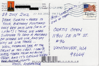 From the “better late than never” file: this card from Alexandra actually arrived last month, but languished in the glovebox of our car while we finished up WarTron.