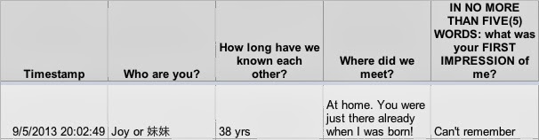 “IN NO MORE THAN FIVE(5) WORDS: what was your FIRST IMPRESSION of me?”