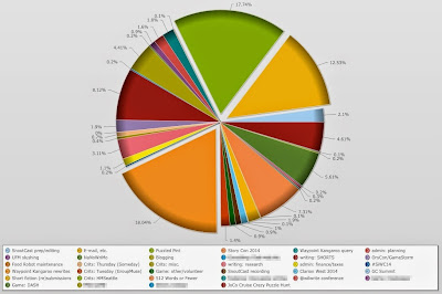 I’m not complaining, mind you. I enjoy making puzzle games and running events. But here’s a snapshot of my hours worked, from January 2014 to early October: