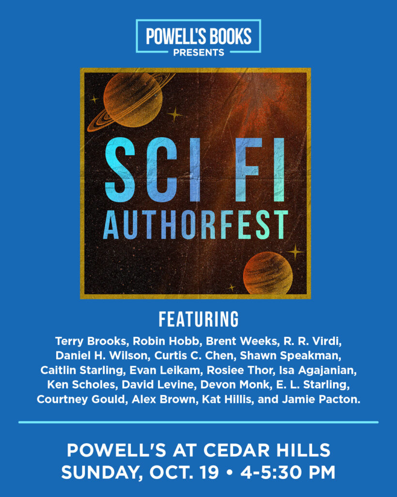 Last but not least, on Sunday afternoon I’ll be heading over to Powell’s Books at Cedar Hills Crossing for their “Sci Fi Authorfest” signing event, from 4:00pm-5:30pm: